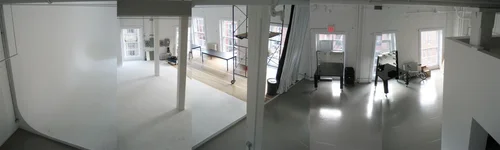 Commercial photo studio with cyc, daylight area kitchen and changing rooms